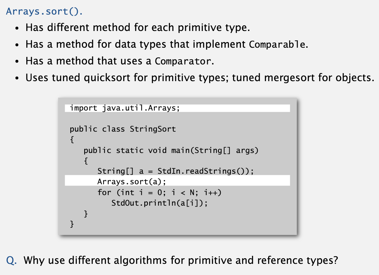 quick/merge sort 두 종류가 포함되어 있는데, 객체의 종류에 따라 다른 정렬을 사용한다고 합니다.