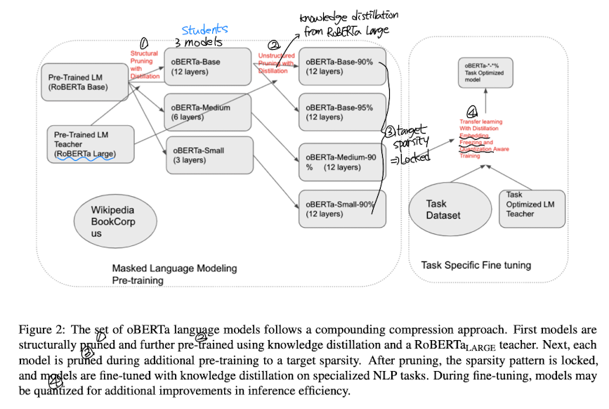 oBERTa: Improving Sparse Transfer Learning via improved initialization, distillation, and pruning regimes