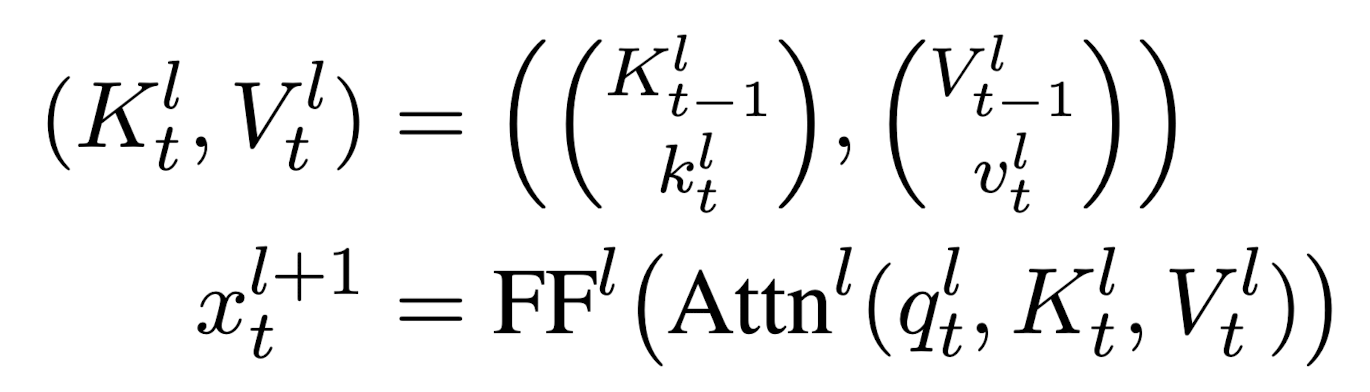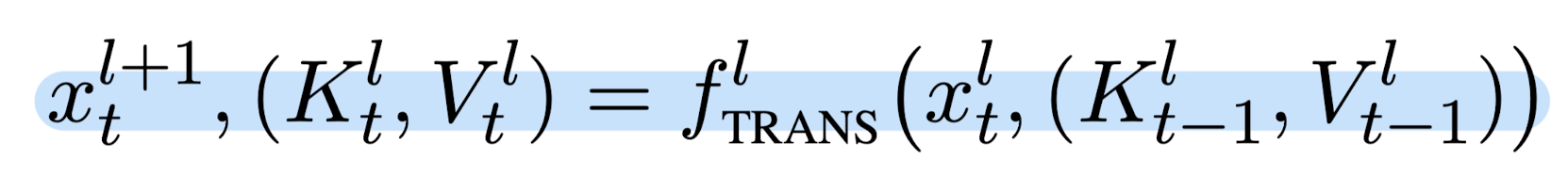 즉, $H^{l}_{t}=(K^{l}_{t},V^{l}_{t})$가 됩니다.
