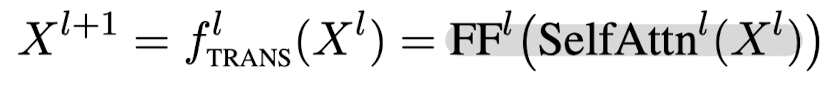 $X^{l}=(x^{l}_{1},...,x^{l}_{t}) \in \mathbb{R}^{t \times d}$ 를 입력으로 받는 transformer의 각 layer별 출력은 다음과 같이 정의됩니다.